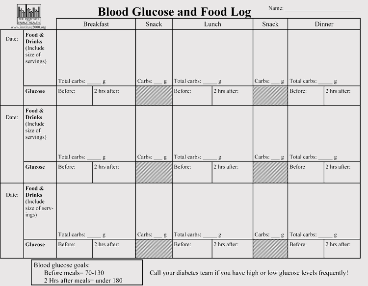 Attaching a sample of blood sugar logging sheet: Sample Logging Sheet